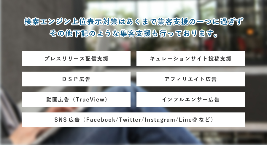アクセスアップ支援の具体的な施策としまして、弊社オリジナルの『コンプリートSEO』サービスをご用意しております。